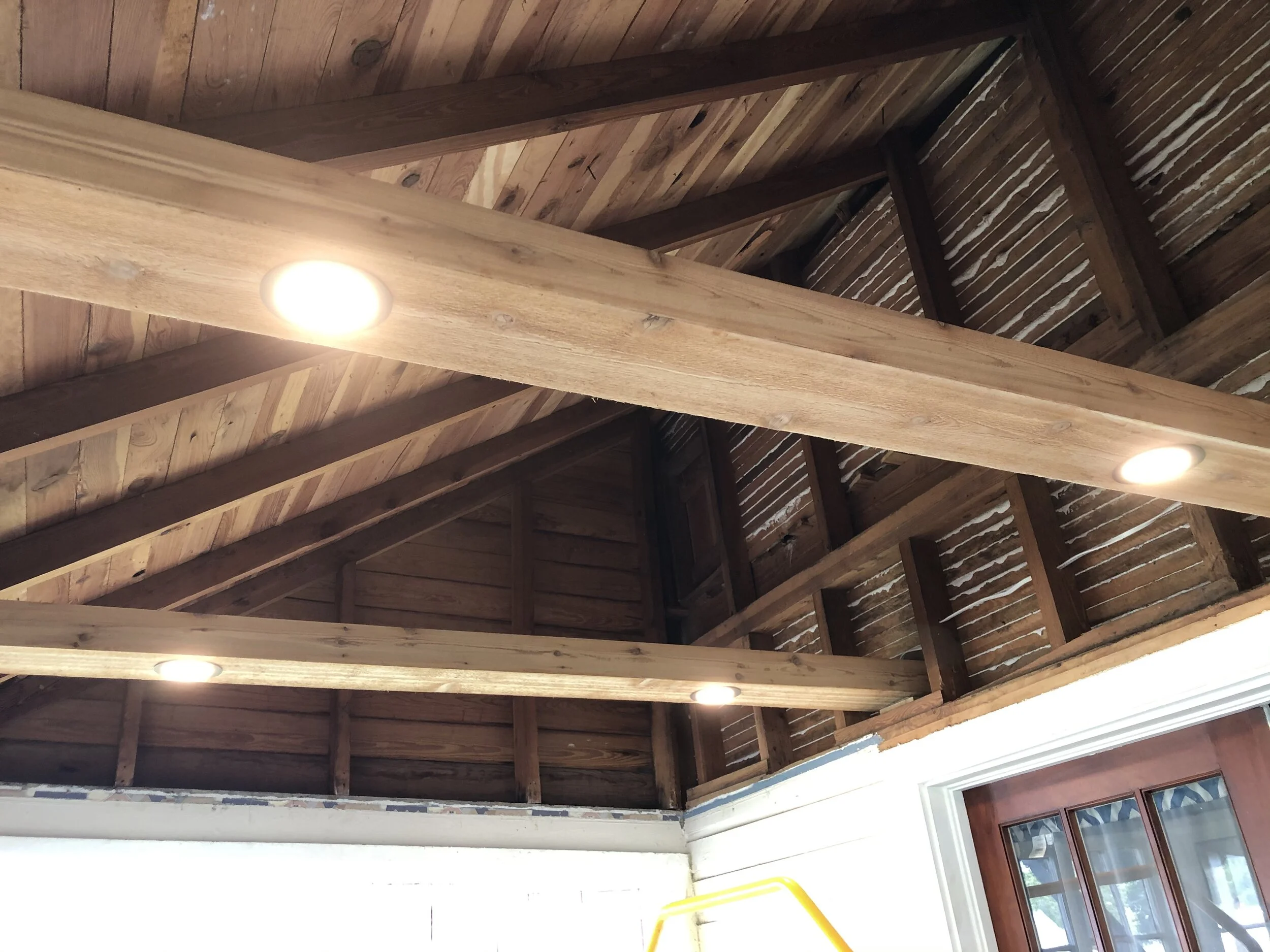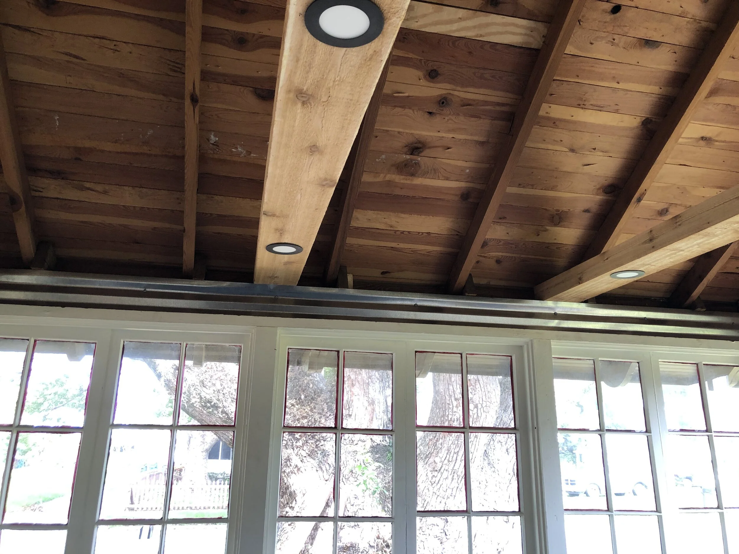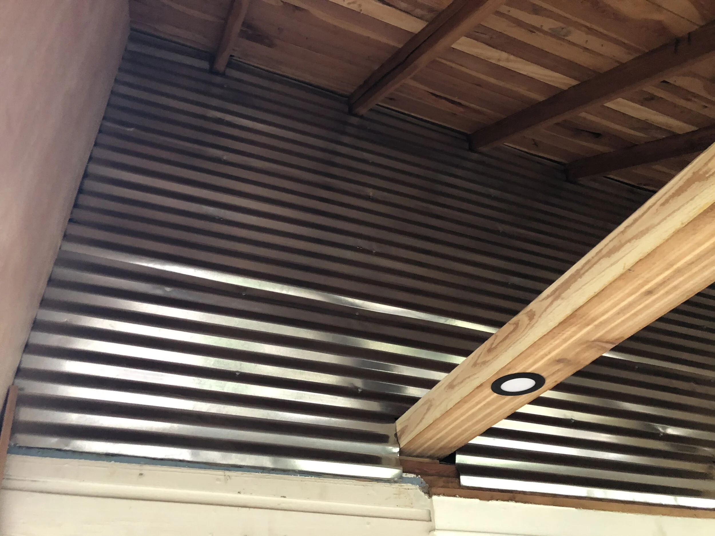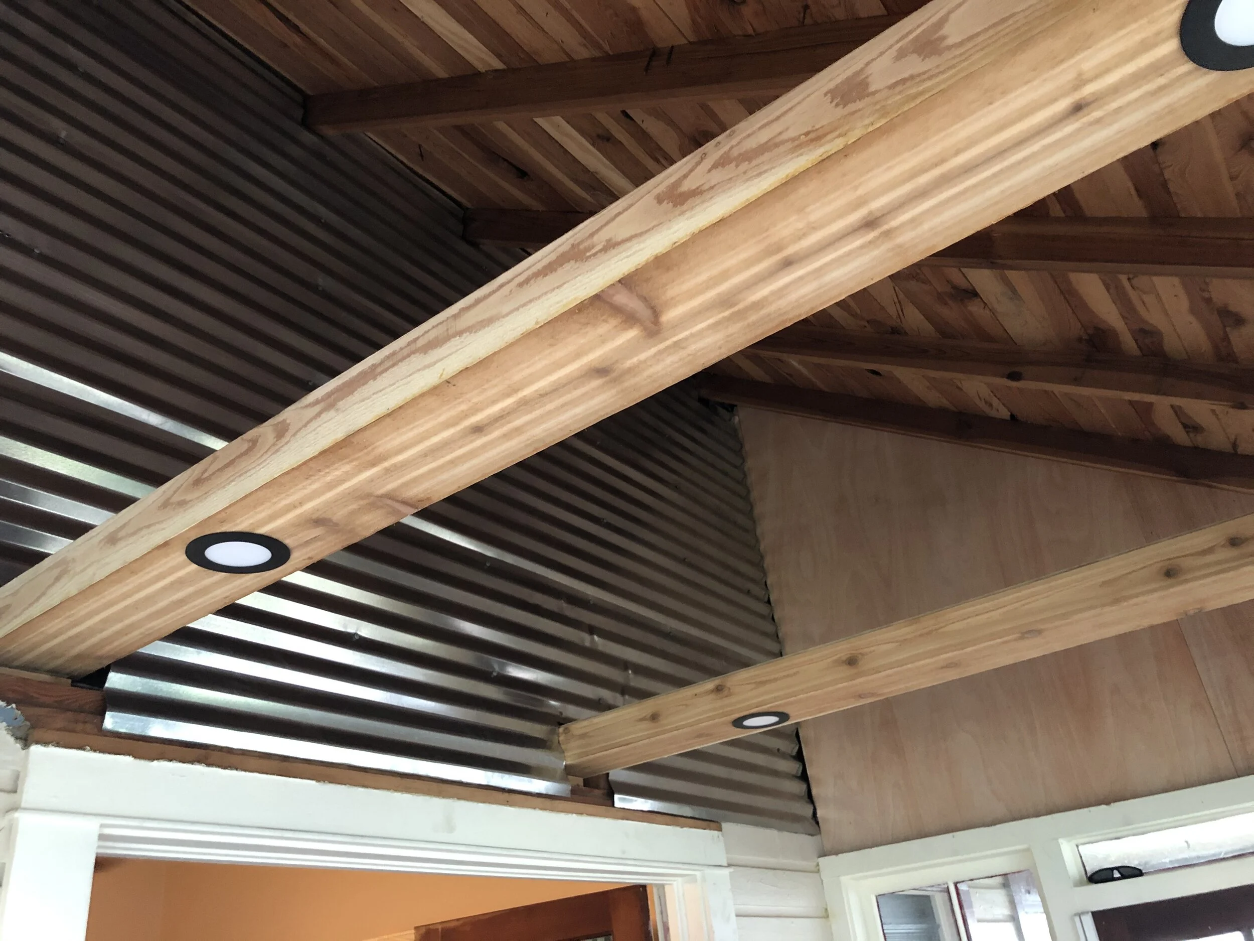 If you love what you do, you’ll never work a day in your life. Well, what if you loved WHERE you worked too? What started as an old, outdated, and unutilized space became a gorgeous home office space with dimmable LED lighting built into custom built Cedar beams, a statement accent wall of corrugated metal, and a much more open and fresh feel. The owner initially intended to just replace the bead board ceiling, but upon opening it up, we were able to come up with a design that left the room feeling much larger, and shows off the amazing original wood of the home’s roof (Insulation was not a concern). After adding about 10 vertical feet to the room, a metal accent wall was added, the open spaces were closed in with finish grade boards. Cedar beams and trim finished it off, and gave this room a classic modern/chic look (and a fantastic aroma)!