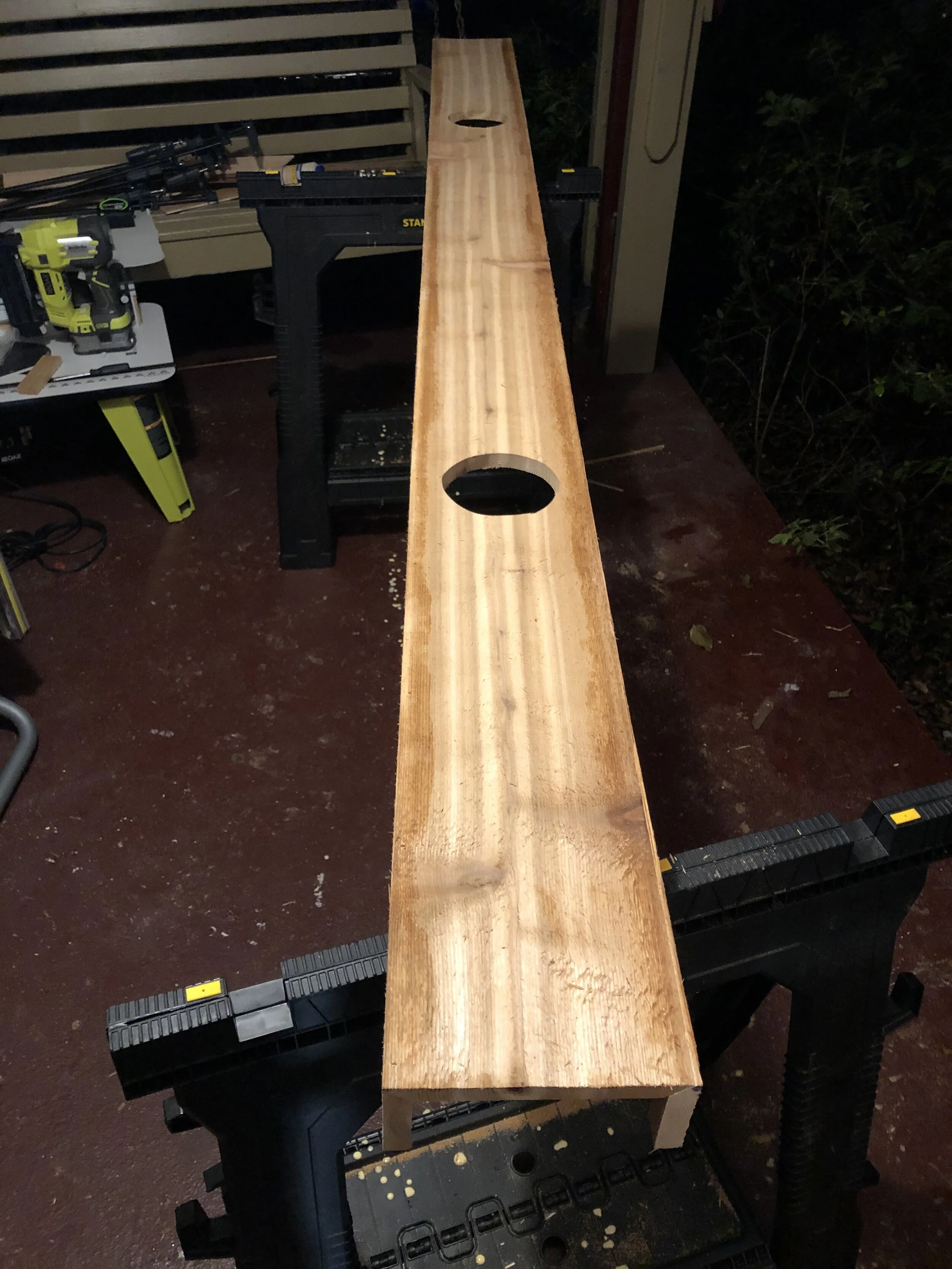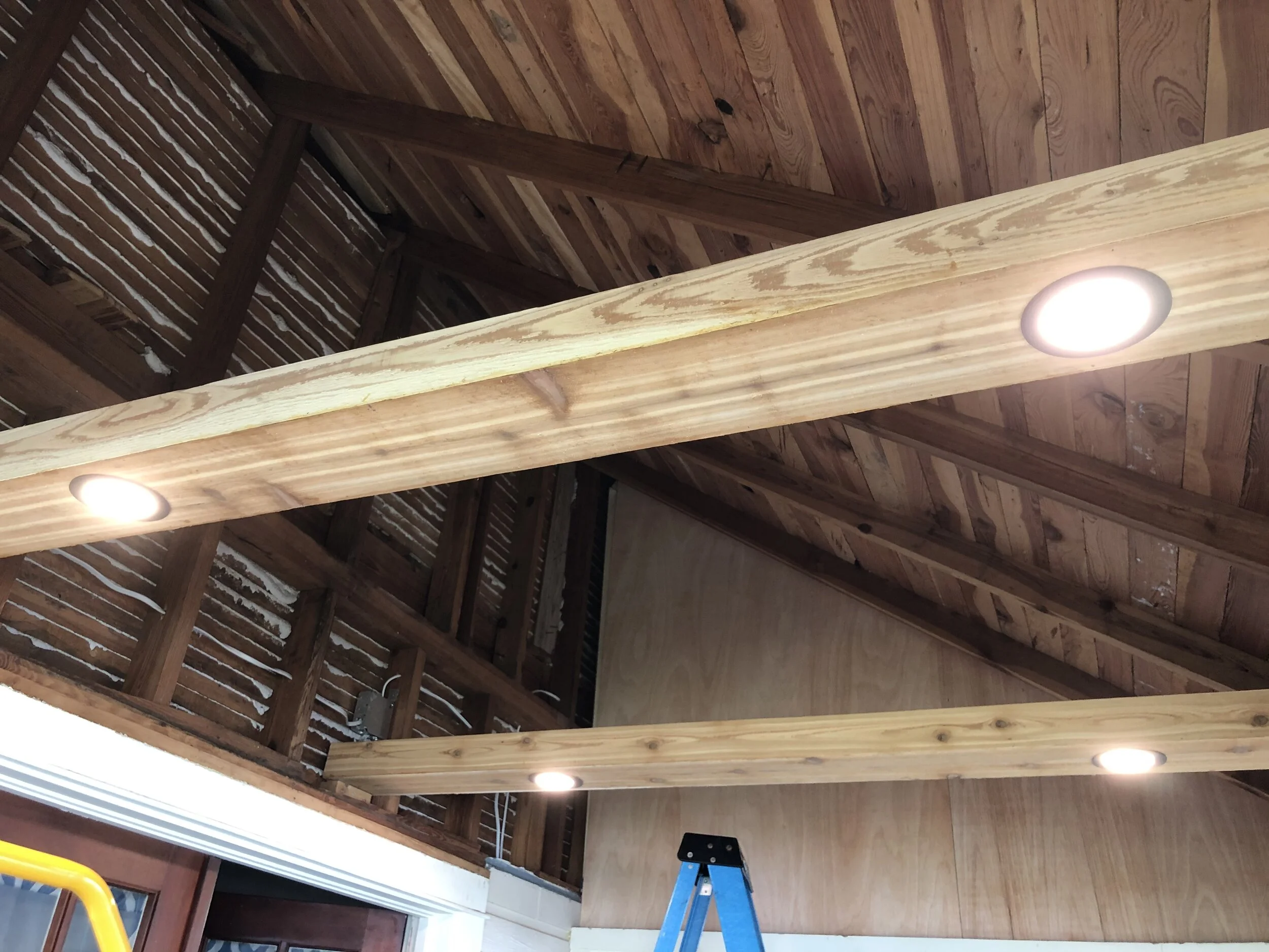 Cedar beams being built